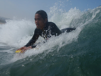 As an old...uh... mature bodyboarder, I enjoy good vibes in the water almost as much as I enjoy actually surfing. That said, I got to talk story (as they say in Hawaii) with one of Sal's brothers during today's sesh. He lived on the same island that I'm from and he had surfed a lot of the same breaks that I used to surf. Recalling those breaks took me down the proverbial memory lane. Now one thing's for sure: I can't wait to go home to Hawaii and hit up those spots like I did back in the day. Hawaiianair.com, here I come!